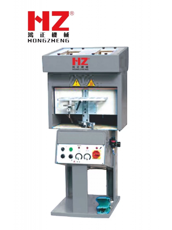 ①本机设计用于蒸软鞋子中后帮,将鞋面放入加热的鞋楦后,设定好适当的温度和时间,然后由机器前方的控制按钮控制蒸软功能